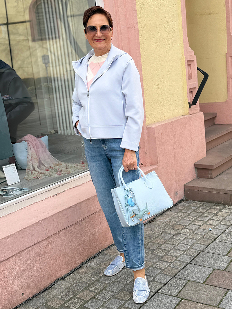 Das was sie auszeichnet ist ein Geschick für stilsicheren Einkauf. Einer gekonnten Mixtur aus Extravaganz und Lässigkeit für Frauen, die stark und jung geblieben sind oder es sein wollen. Frauen, die gerne leben. Sich mit ihrem Tun und Handeln im Alltag identifizieren und authentisch sind. Gabriele Teufel lebt das. Und das mit Begeisterung.
